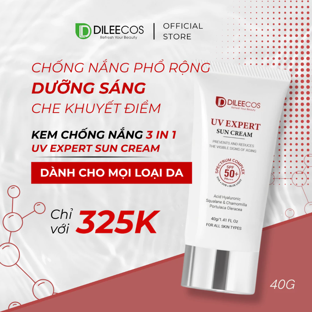 🔥 Kem chống nắng phổ rộng, dưỡng sáng, che khuyết điểm nam nữ UV EXPERT SUN CREAM SPF50+ Dileecos đang giảm giá!