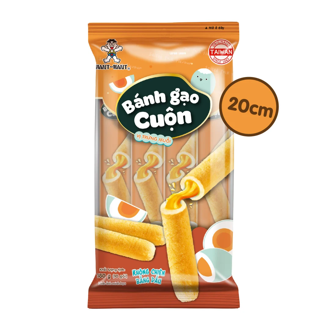 Với bao bì đẹp mắt và tiện lợi, bánh gạo cuộn muối trứng Want Want không chỉ là một món ăn vặt ngon mà còn là một lựa chọn tuyệt vời cho những người bận rộn.
