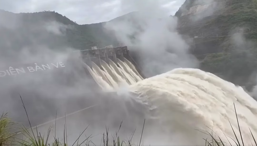 Hồ thủy điện Bản Vẽ xả nước.