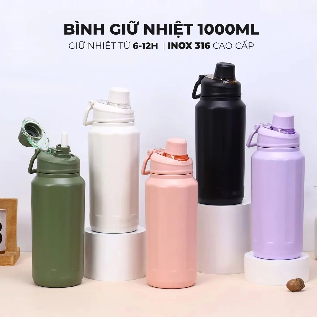 🔥 Bình Nước Giữ Nhiệt 1000ml Inox 316, Giữ Nóng Lạnh 6 -12H, Có Ống Hút Tiện Lợi đang giảm giá!
