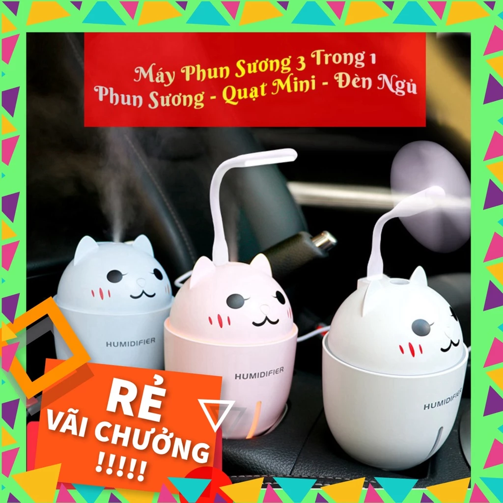 🔥 [XẢ KHO-Mua 1 Được 4 ] Máy Phun Sương, Tạo Ẩm, Khuếch Tán Tinh Dầu 3 Trong 1 Hình Mèo Cute, Tặng Kèm Đèn LED , Quạt Mini đang giảm giá!