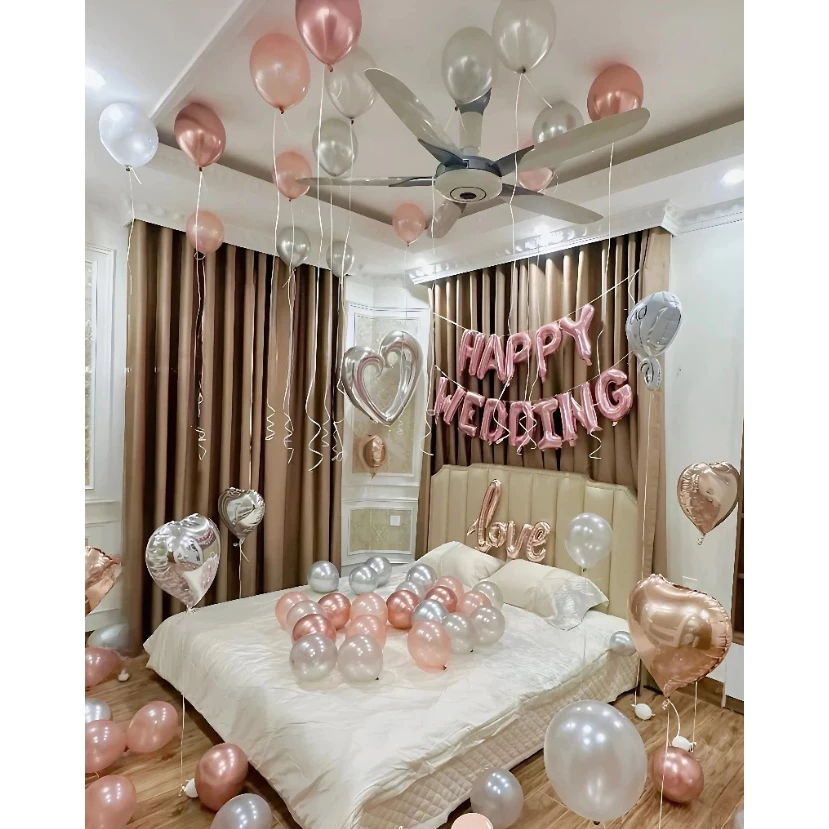 🔥 Set bóng bay Trang Trí Phòng Cưới Happy wedding, trang trí phòng tân hôn [Tặng 100 cánh hoa hồng] đang giảm giá!