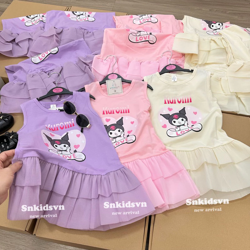 - Tên sản phẩm: Váy đầm sát nách phối nơ mềm hoạ tiết kuromi cho bé gái