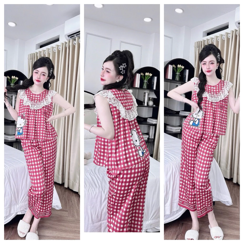 🔥 Bộ Lửng 9 Tấc Nữ Mặc Nhà lụa Latin mịn phối ren, quần lưng thun có túi dài 80cm < 57kg đang giảm giá!