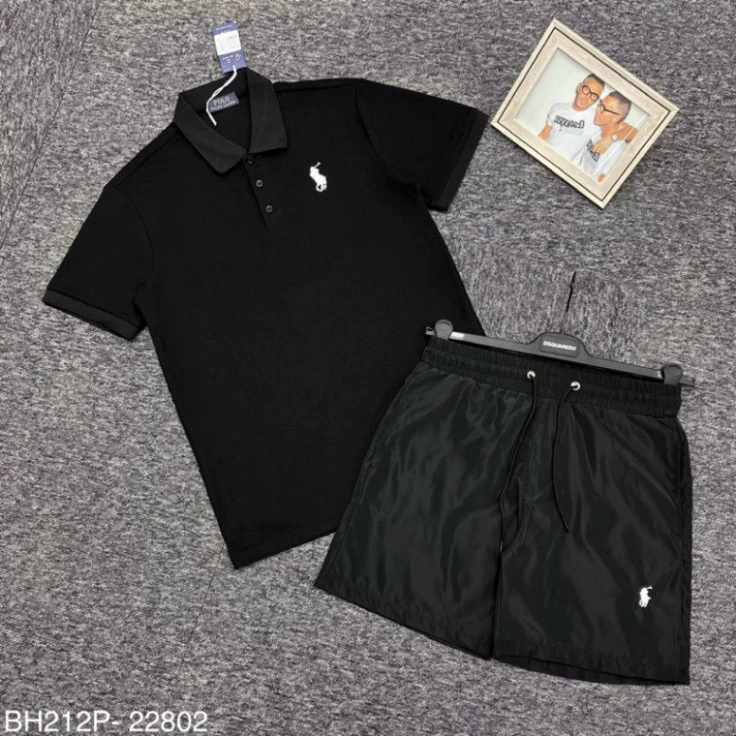 Gợi ý sản phẩm: Bộ đồ nam cộc tay mặc hè RLX cổ bẻ thêu logo ngựa chiến binh ngực và đùi dáng đơn giản boy phố BH212P