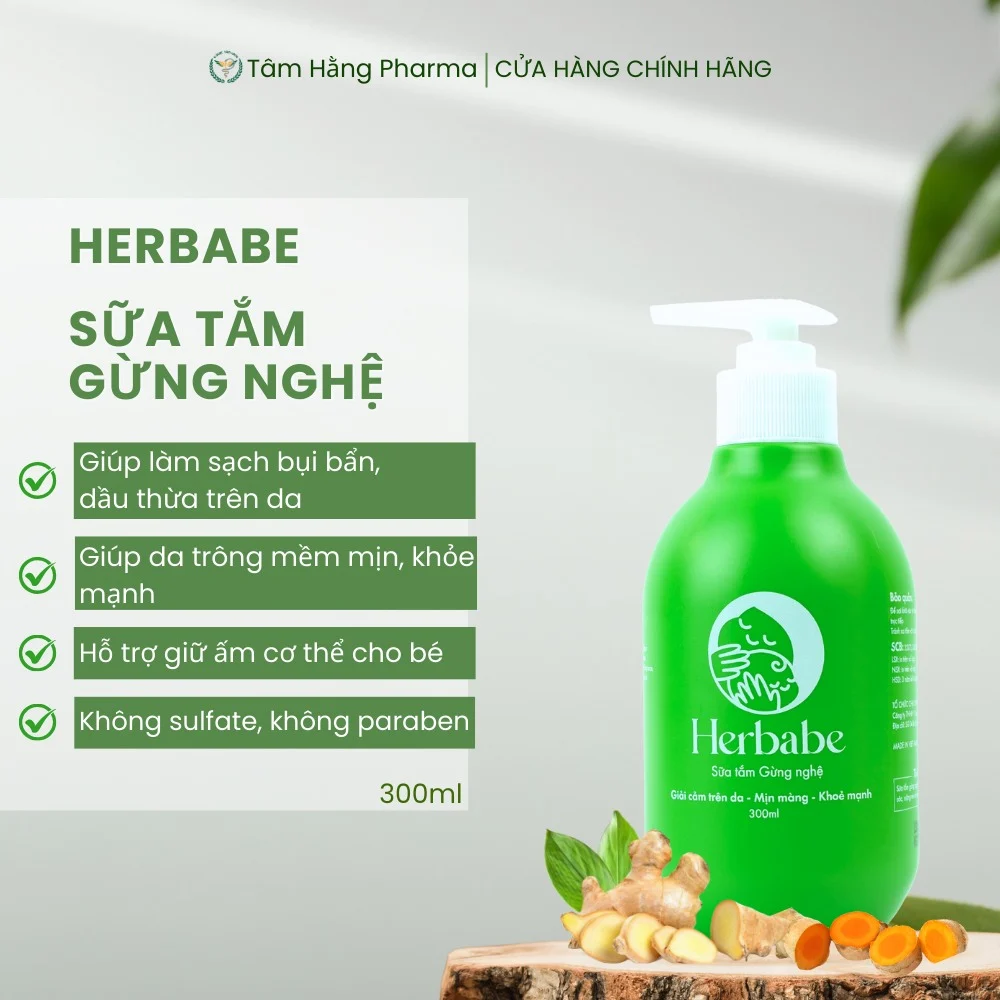 🔥 Sữa tắm gừng nghệ Herbabe, giúp dịu da, giảm kích ứng, giảm cảm mạo, chai 300ml đang giảm giá!