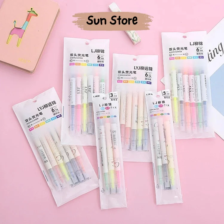 🔥 Set 6 bút 12 màu highlight Pastel nhiều màu hai đầu đánh dấu nhớ dòng tiện lợi đa năng – Sun Store đang giảm giá!