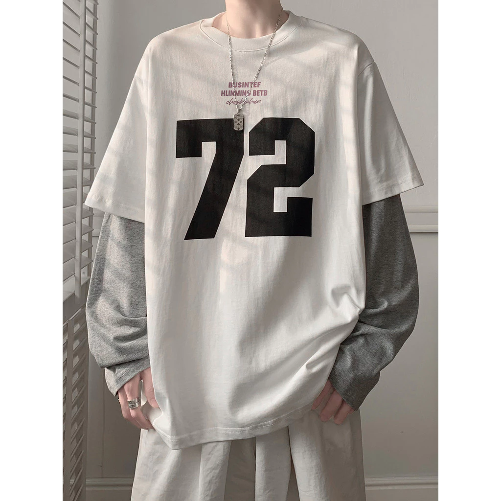 🔥 Mỹ giả hai mảnh jersey áo thun nam mùa xuân dài tay, khâu cổ tròn, phù hợp đi dạo phố. đang giảm giá!